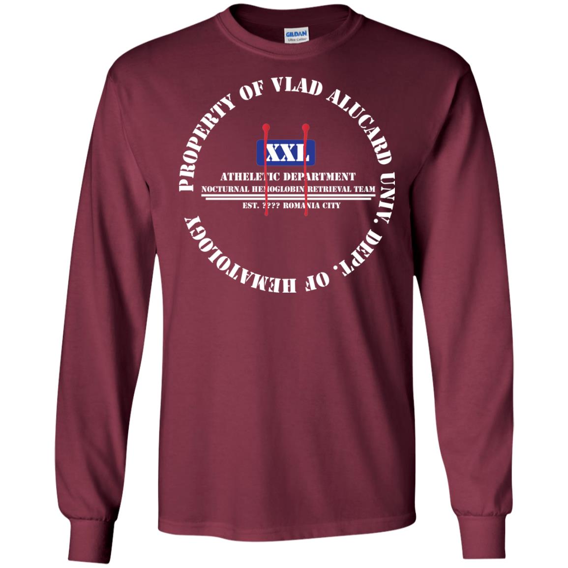 "Property Of Vlad Alucard U Dept. of Hematology” -W Personal Designer long sleeve Hoodie Men's Women's LS Ultra Cotton T-Shirt