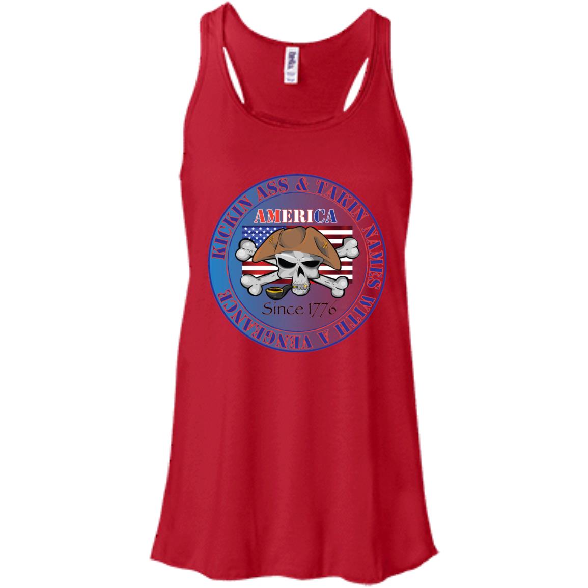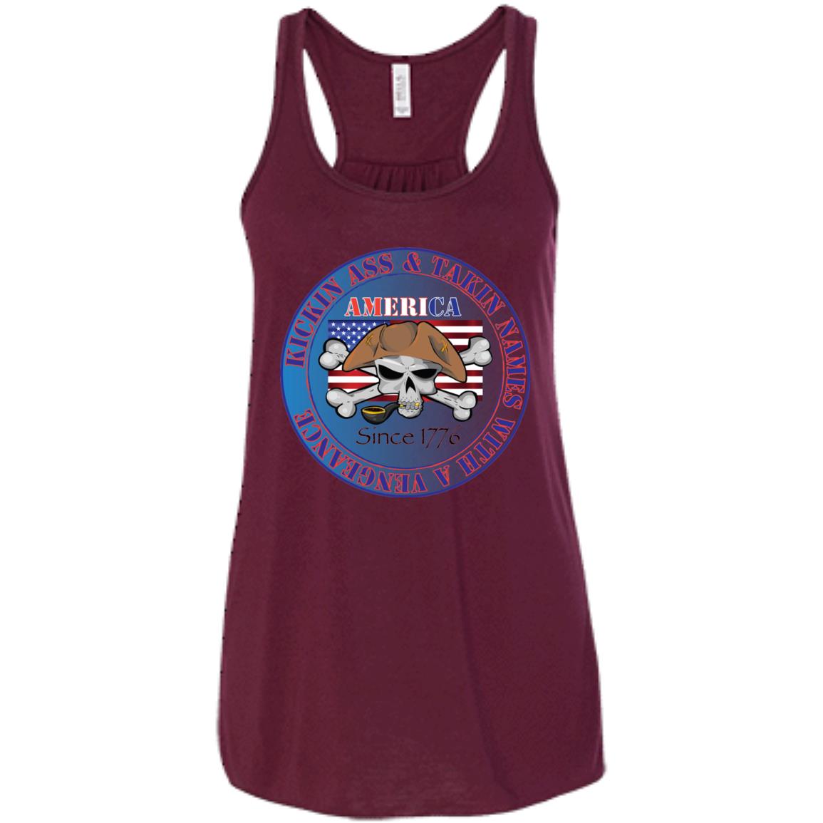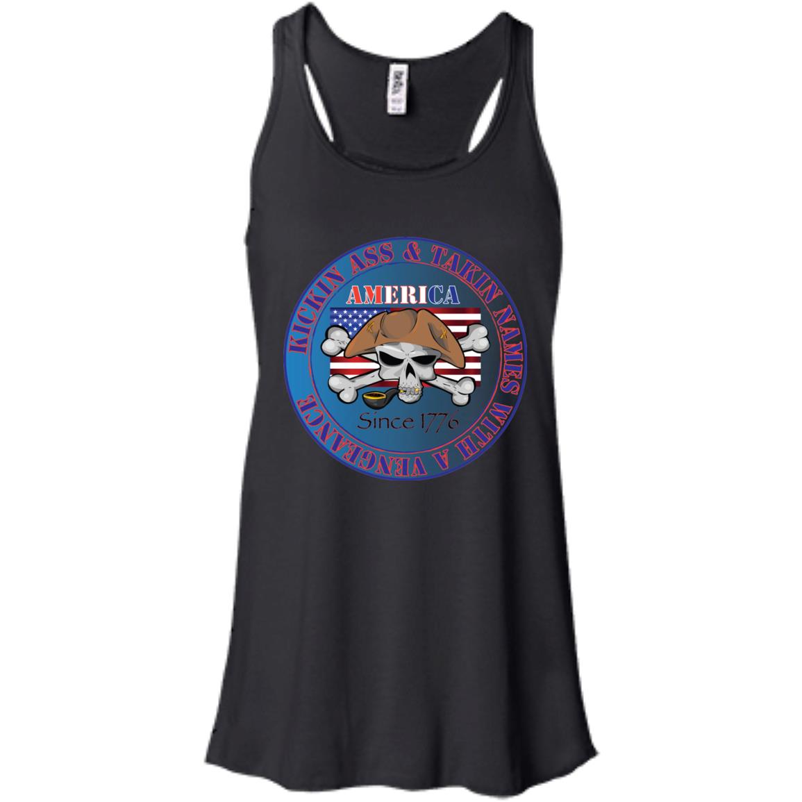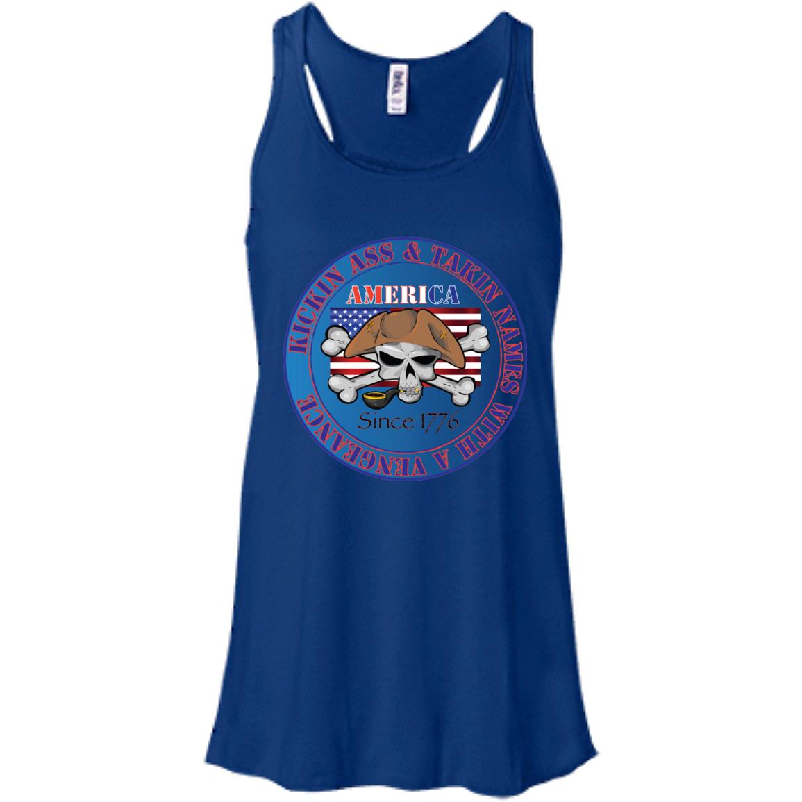 “America” - Kickin Ass Since & Takin Names With a Vengeance Since 1776 - Blue Custom Personalized T-Shirt Ladies' Bella + Canvas Flowy Racerback Tank