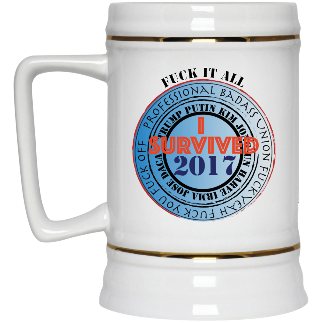 "Fuck It All - I Survived 2017" Custom Design Beer Stein 22oz.