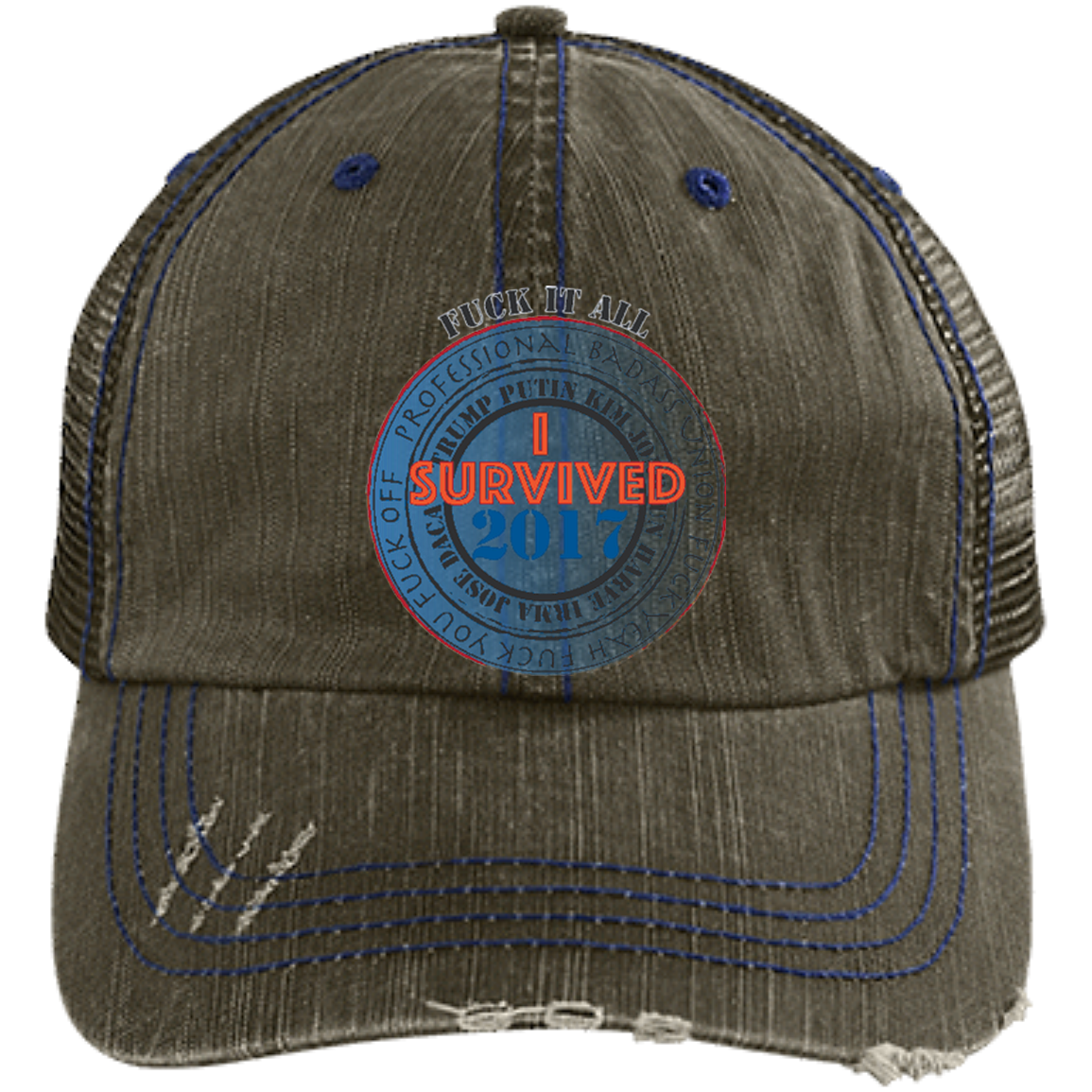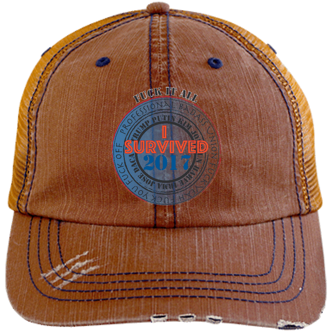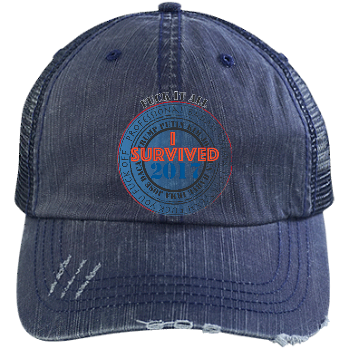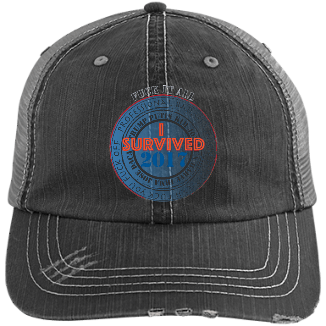 "Fuck It All - I Survived 2017" - Custom Design Distressed Unstructured Trucker Cap