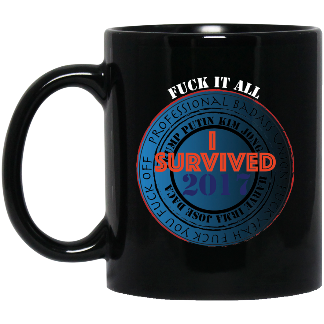 "Fuck It All I Survived 2017" Custom Personalized 11 oz. Black Mug