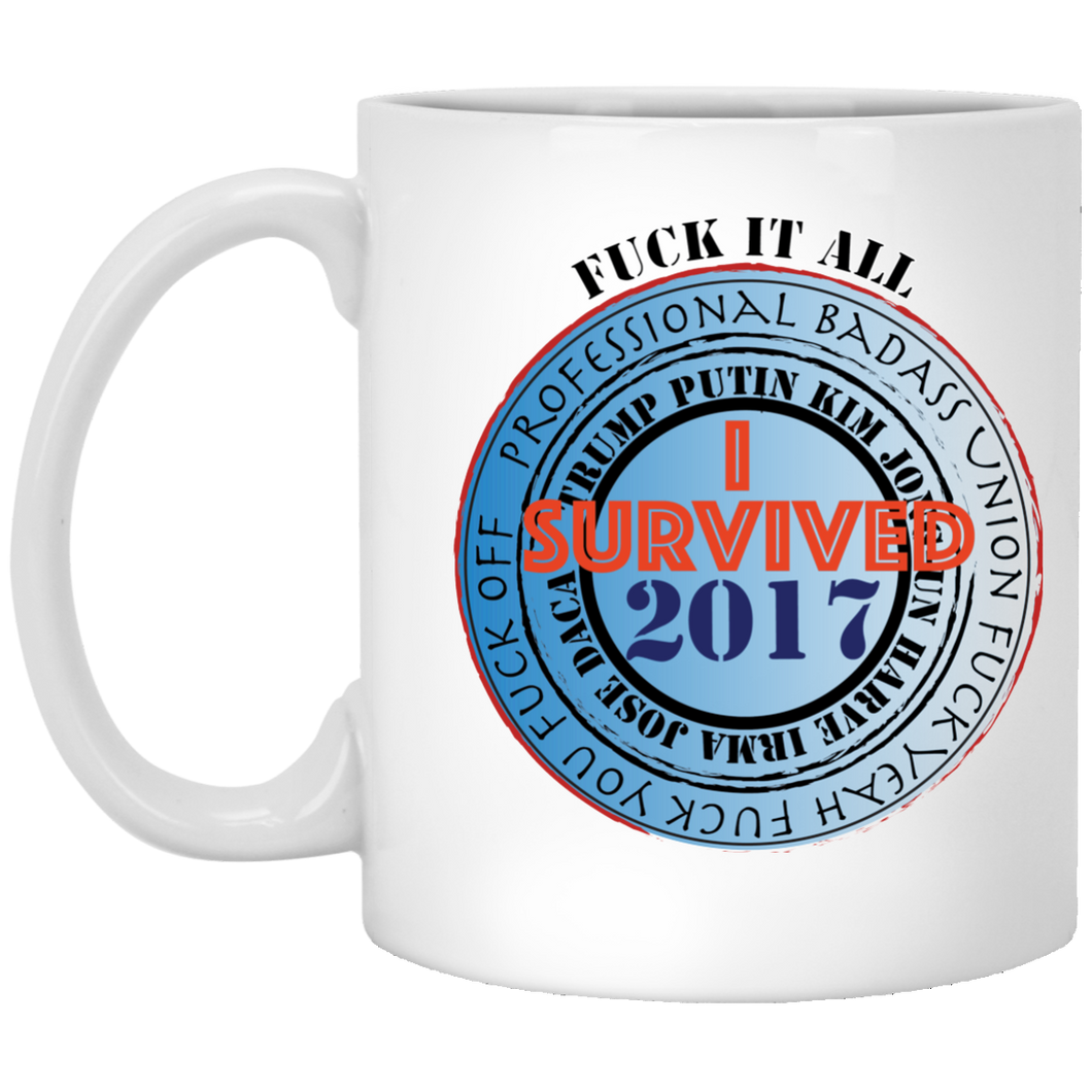 "Fuck It All - I Survived 2017" Custom Personalized Coffee Mug Personalized Coffee Mugs White Mug