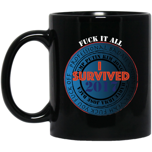 "Fuck It All - I Survived 2017" Custom Designer 15 oz. Black Mug