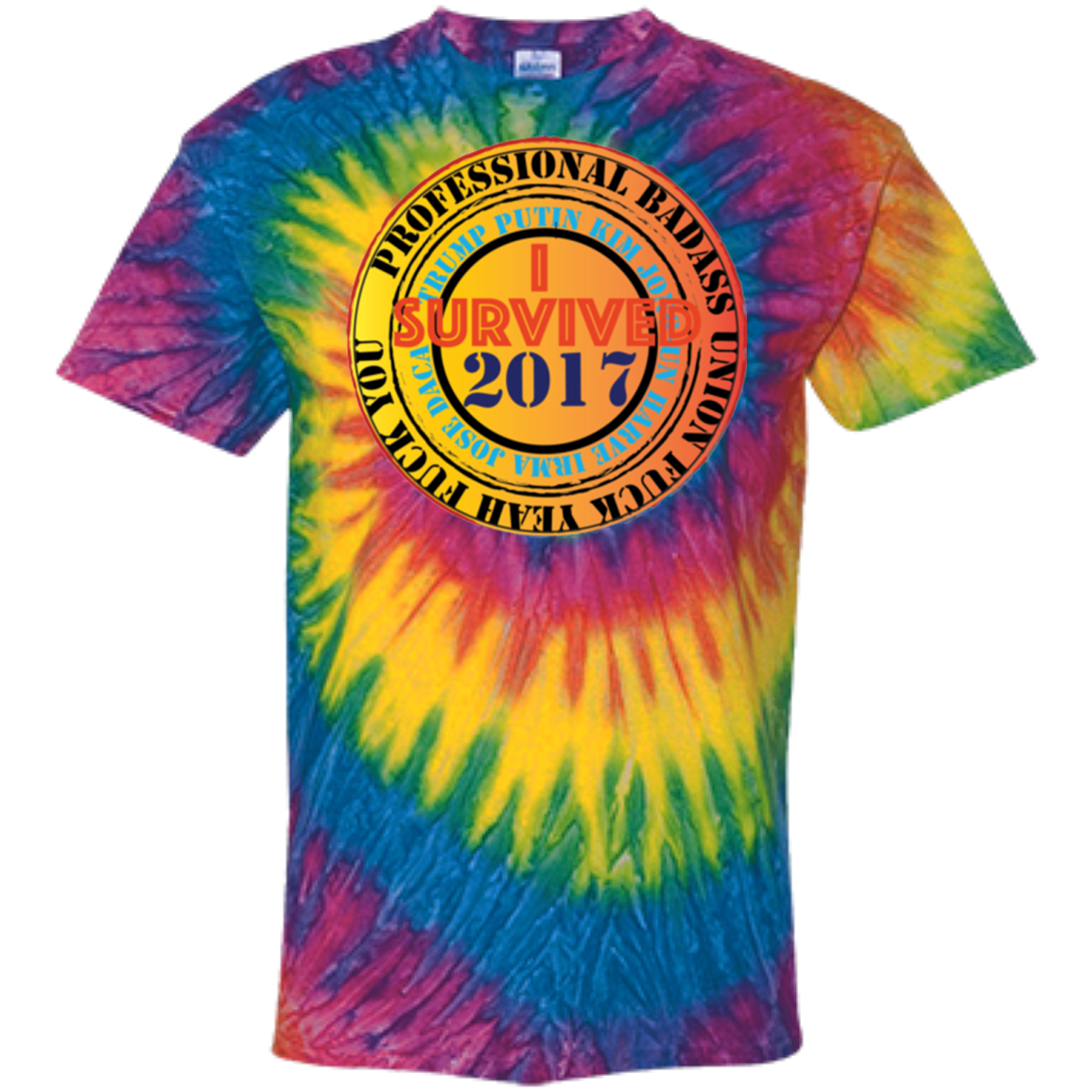 "Fuck Yeah - I Survived 2017" Custom Personalized Men's Women's Cotton Tie Dye T-Shirt