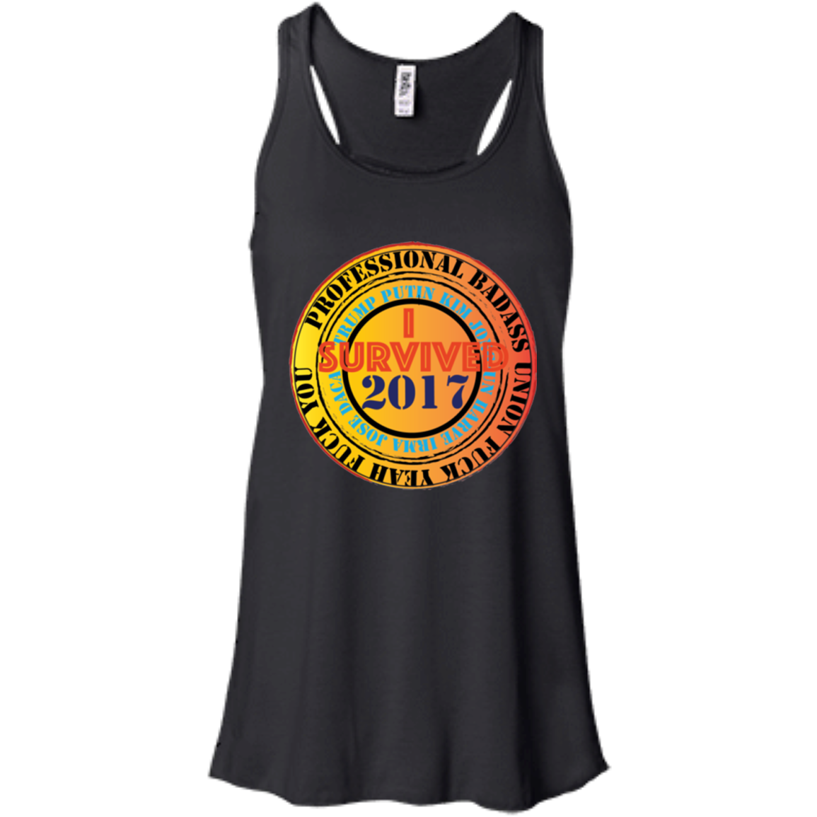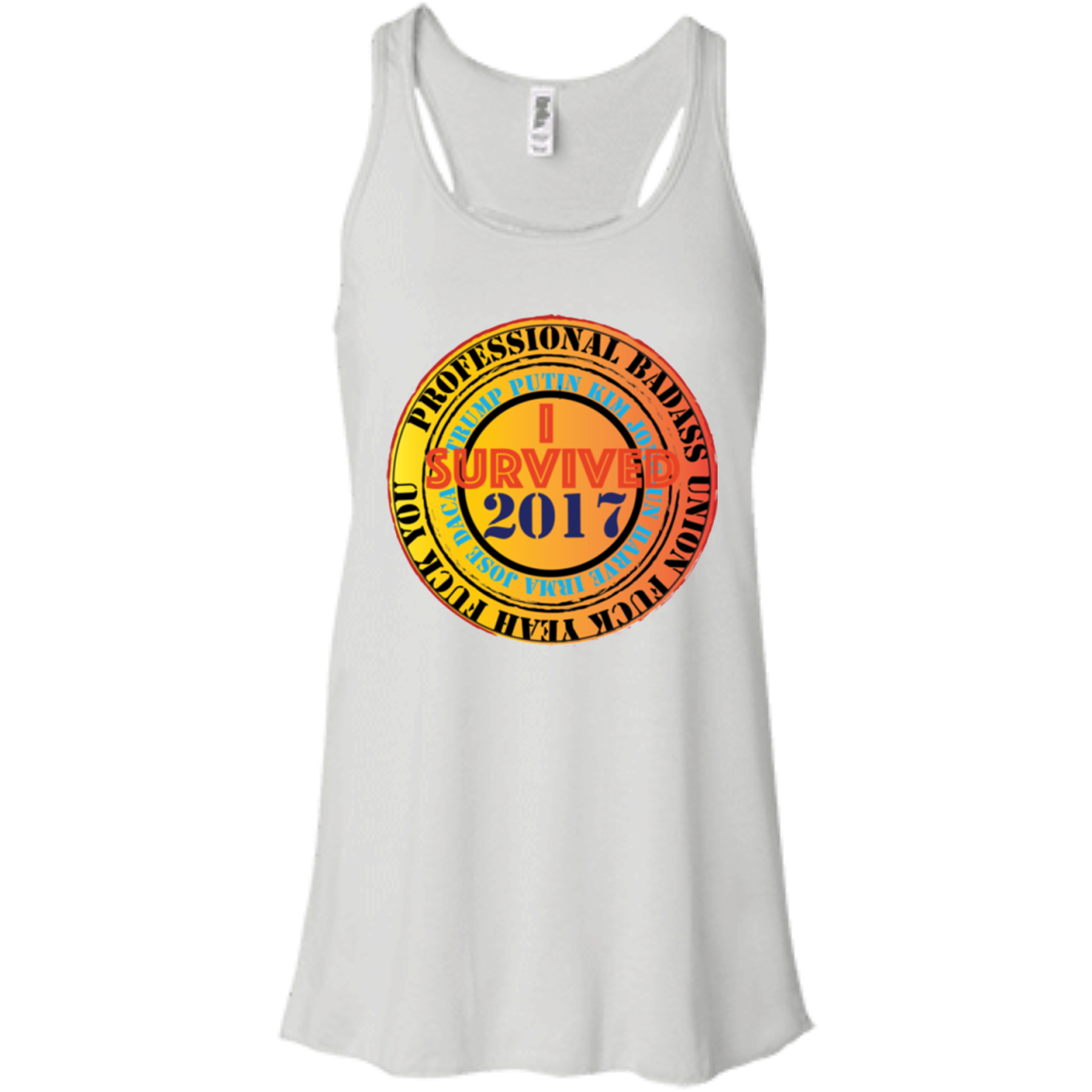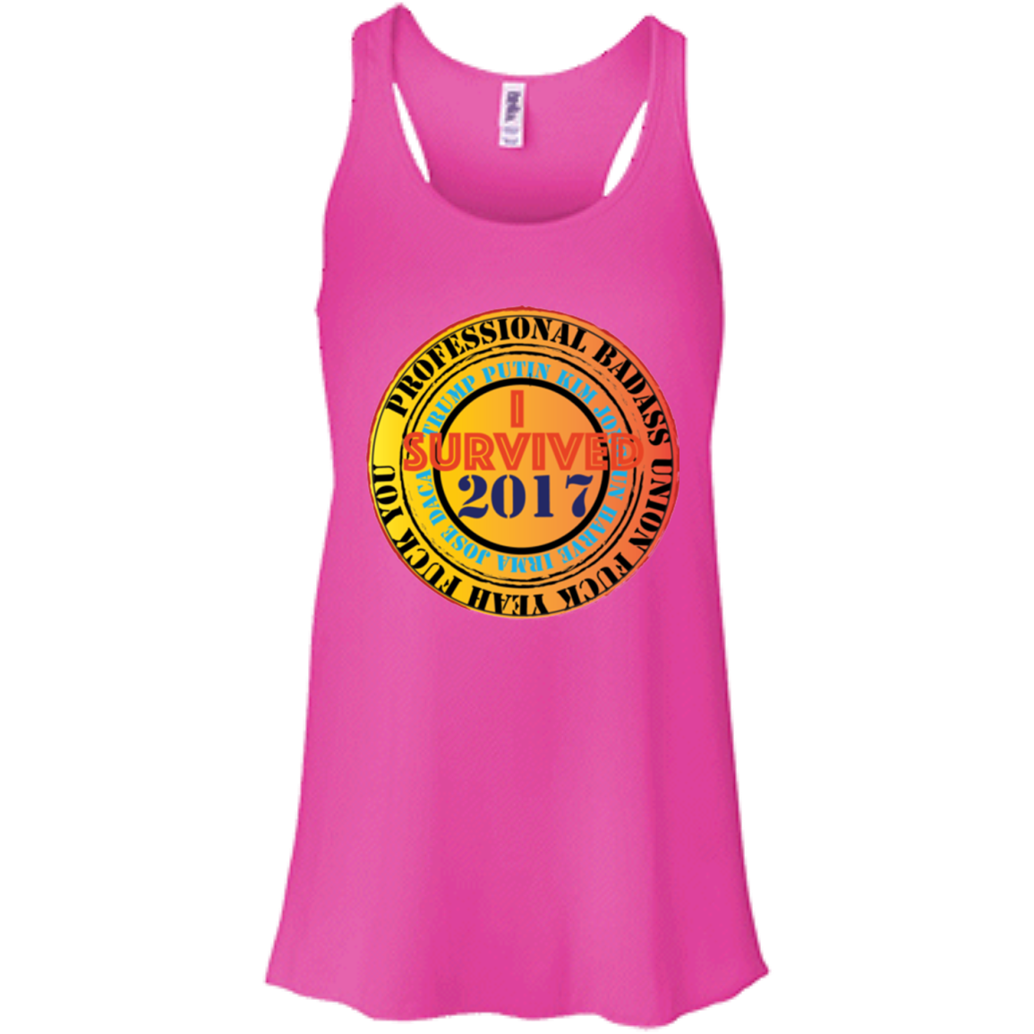 "Fuck Yeah - I Survived 2017" Custom Personalized T-Shirt Ladies' Canvas Flowy Racerback Tank