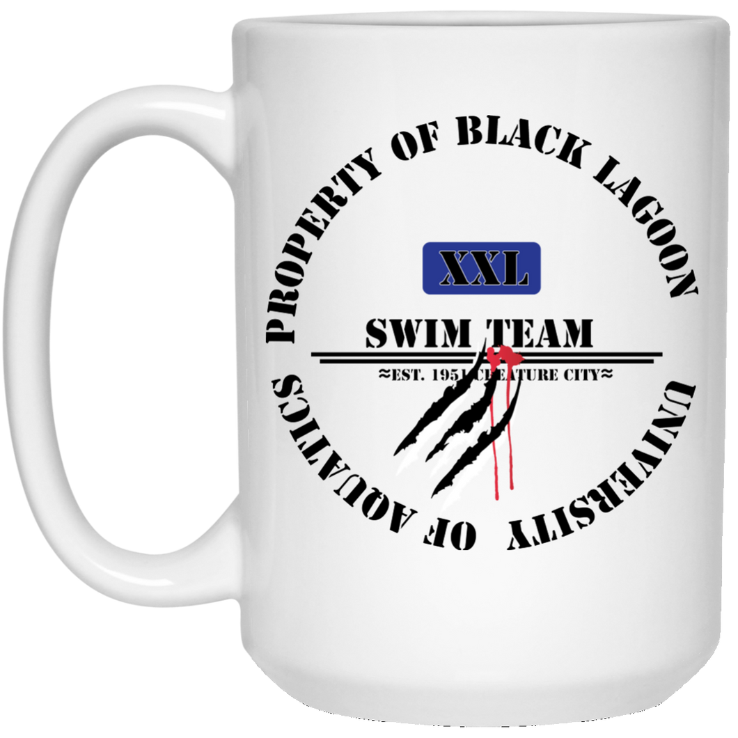 "Property of Black Lagoon U. Swim Team" - M Personal Designer 15 oz. White Mug