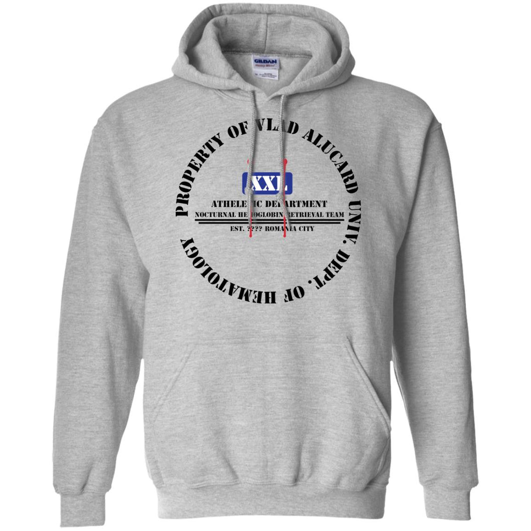 "Property Of Vlad Alucard U Dept. of Hematology” -B Personal Designer Men's Women's Pullover Hoodie 8 oz.