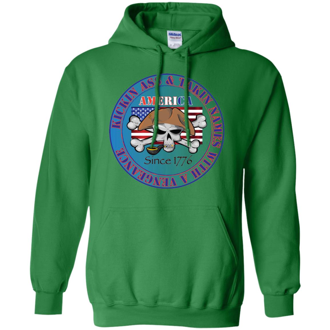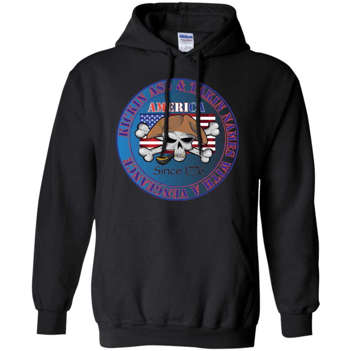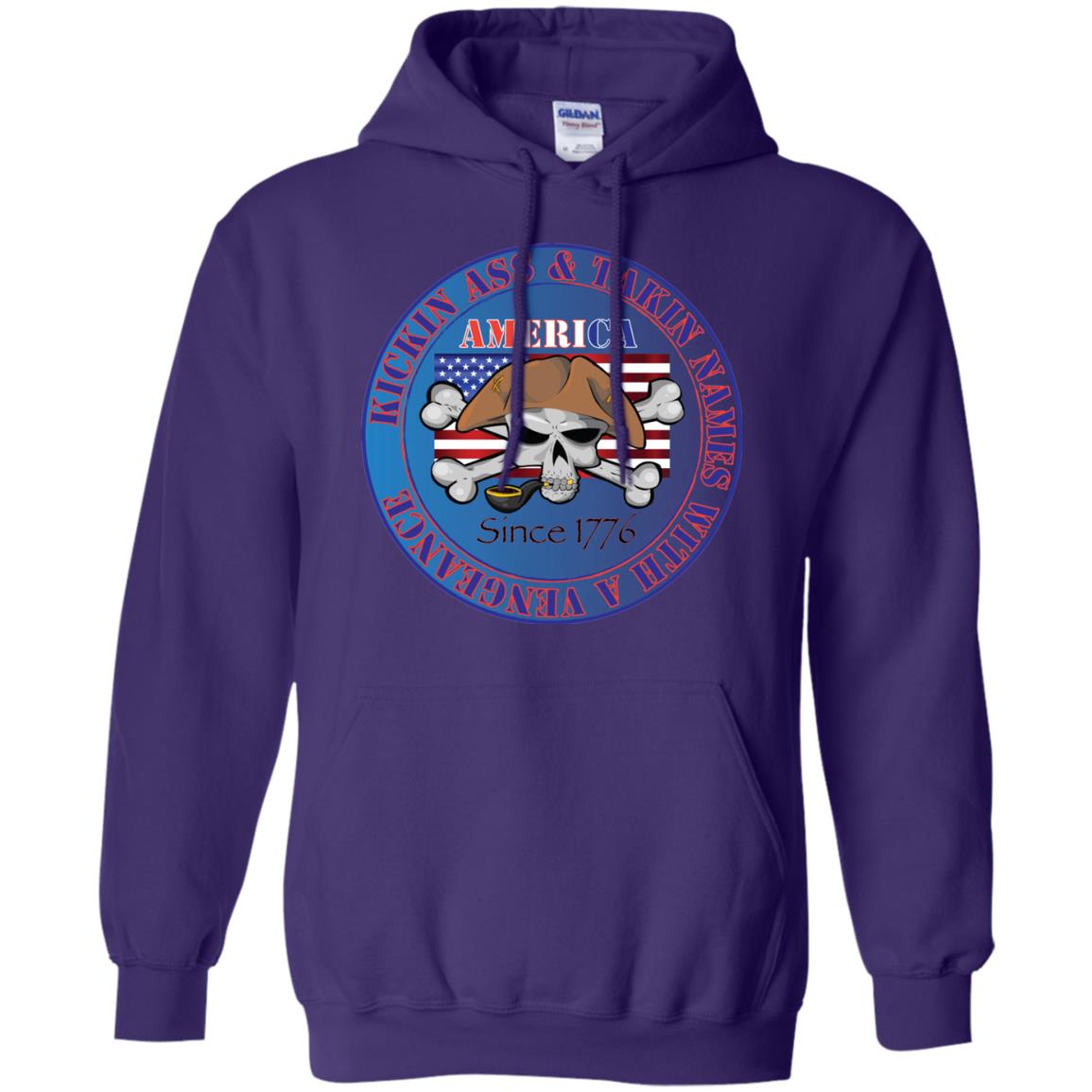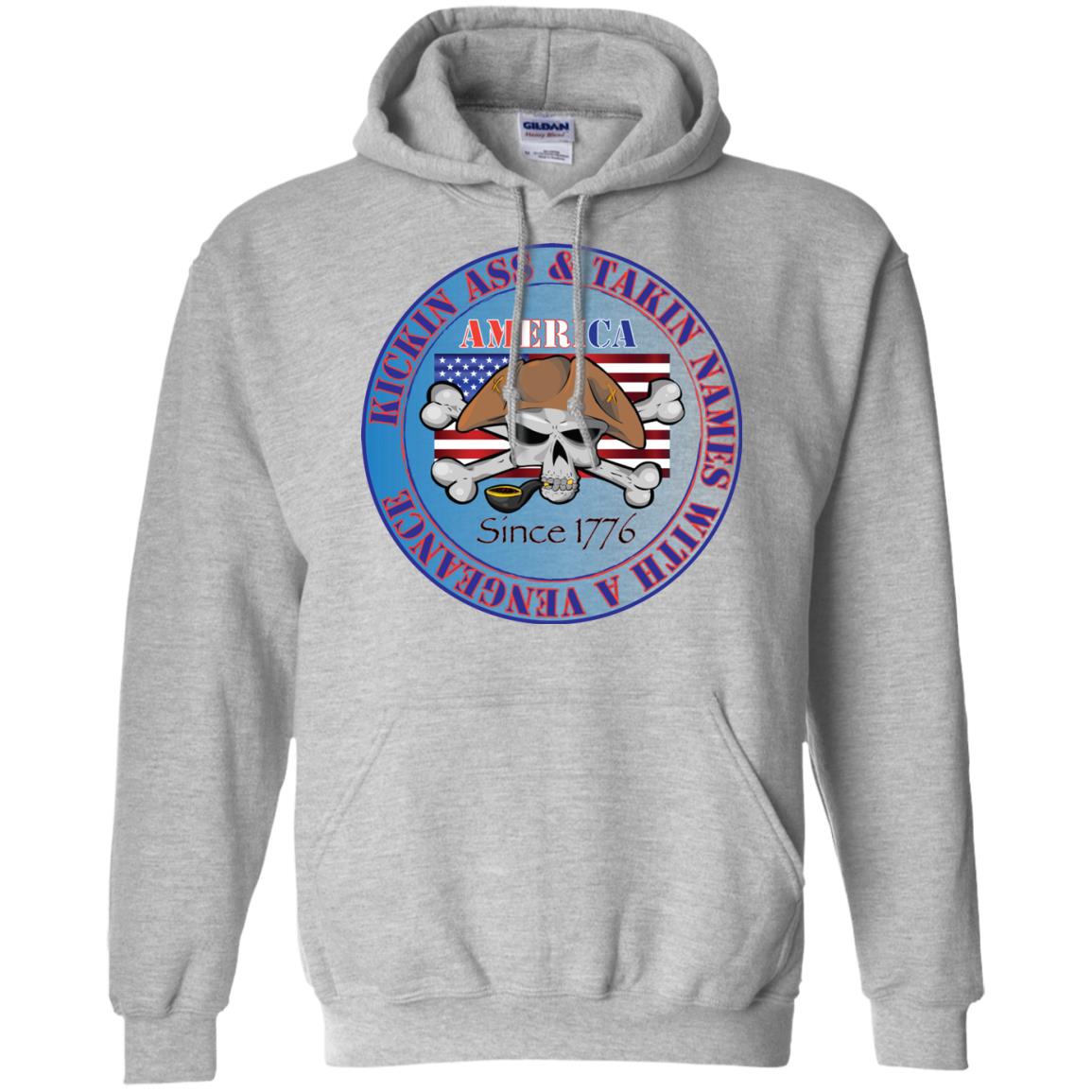 “America” - Kickin Ass Since & Takin Names With a Vengeance Since 1776 - Blue Personal Designer long sleeve Hoodie Men's Women's Pullover Hoodie 8 oz.
