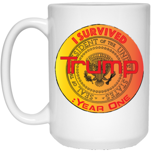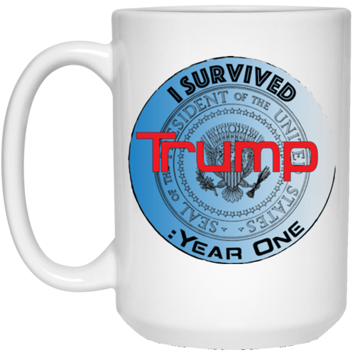 "I Survived Trump: Year One" - W15BSP Personal Designer 15 oz. White Mug