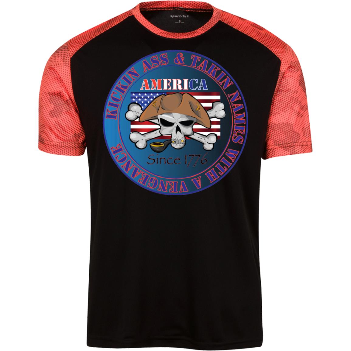 “America” - Kickin Ass Since & Takin Names With a Vengeance Since 1776 - Blue Custom Personalized T-shirts Men's Women's CamoHex Colorblock T-Shirt