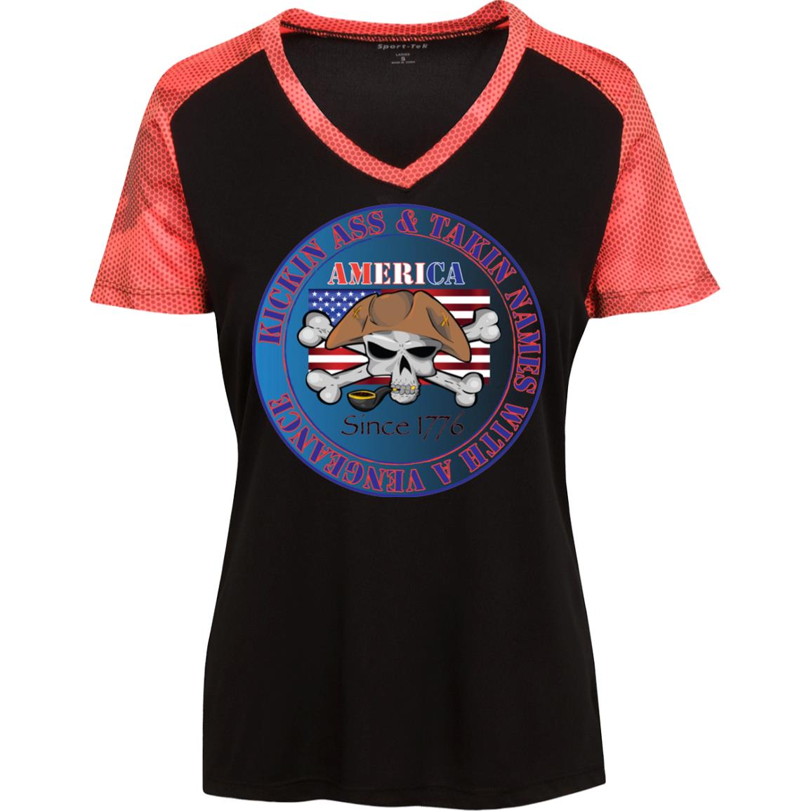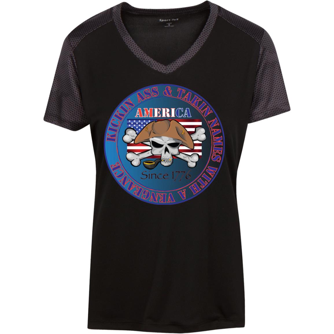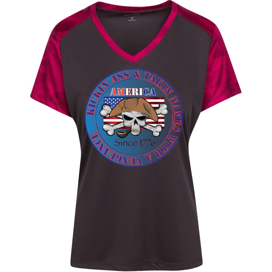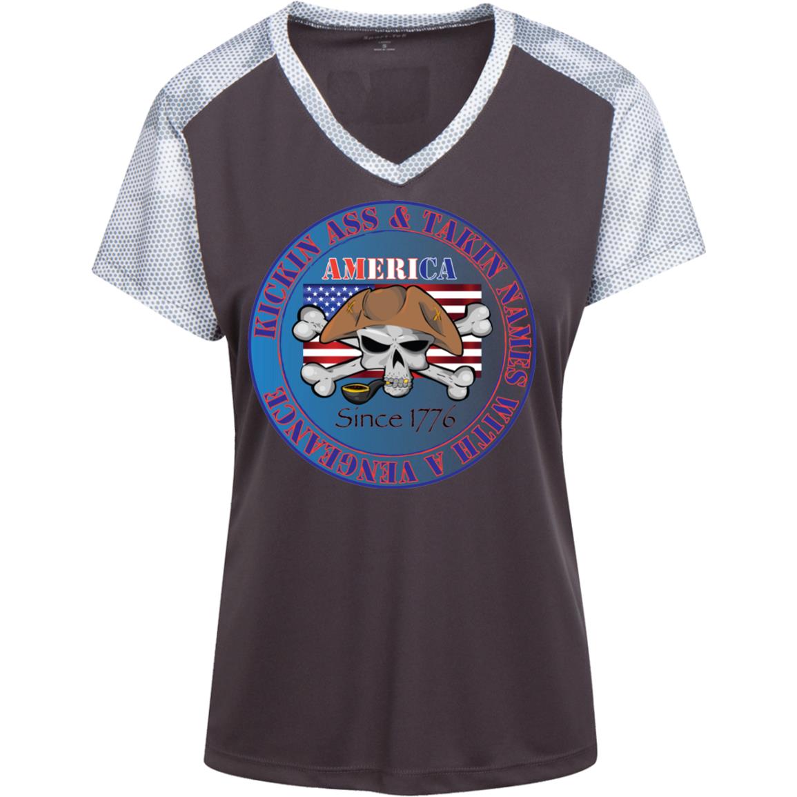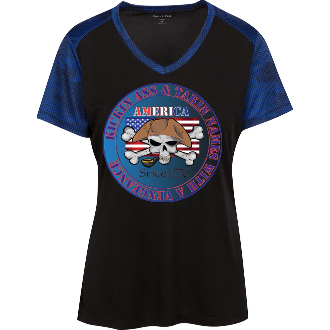 “America” - Kickin Ass Since & Takin Names With a Vengeance Since 1776 - Blue Custom Personalized T-shirts Men's Women's Ladies' CamoHex Colorblock T-Shirt