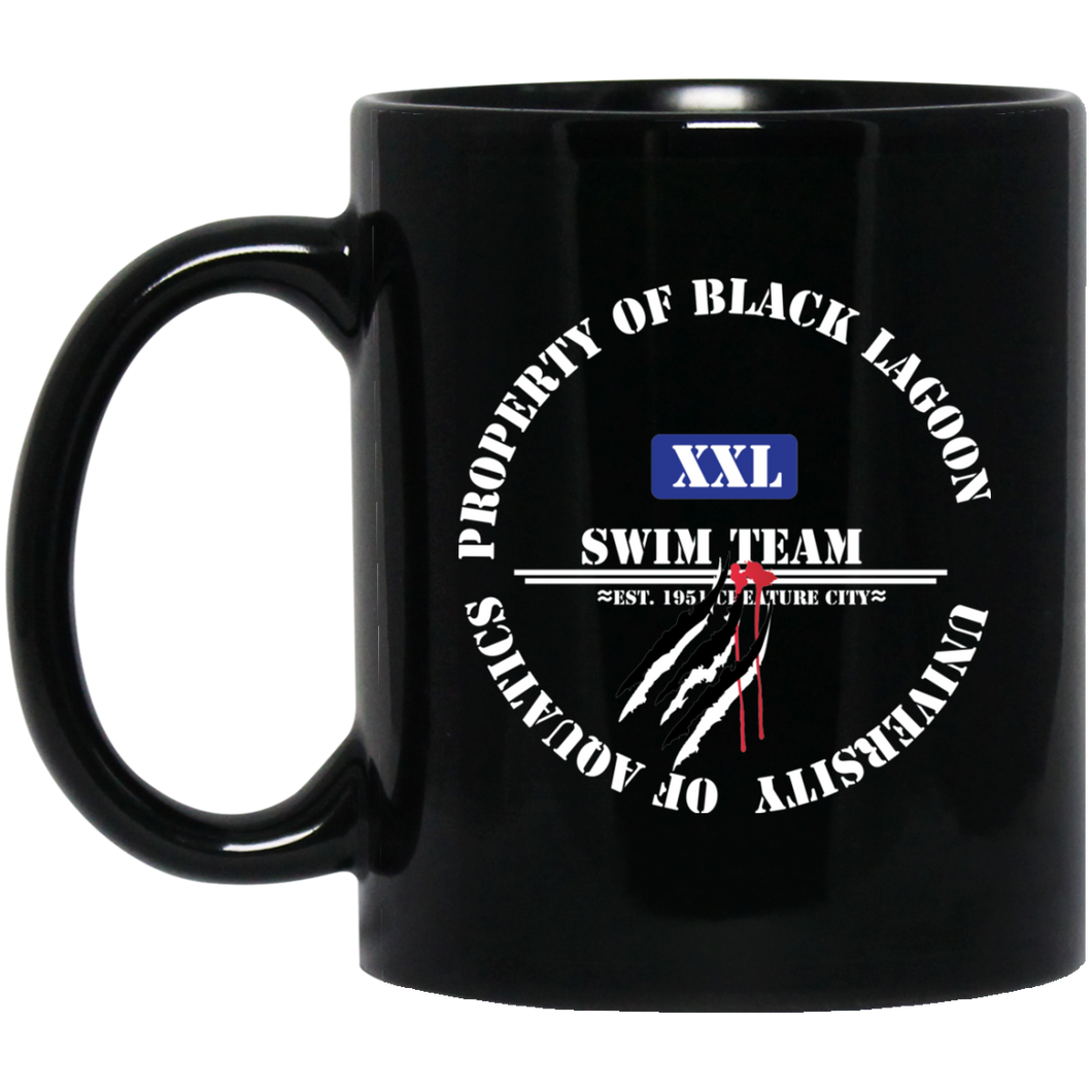 "Property of Black Lagoon U Swim Team" - MB1 Custom Personalized 11 oz. Black Mug