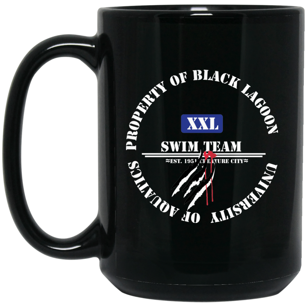 "Property of Black Lagoon U Swim Team" - MB5 Personal Designer 15 oz. Black Mug